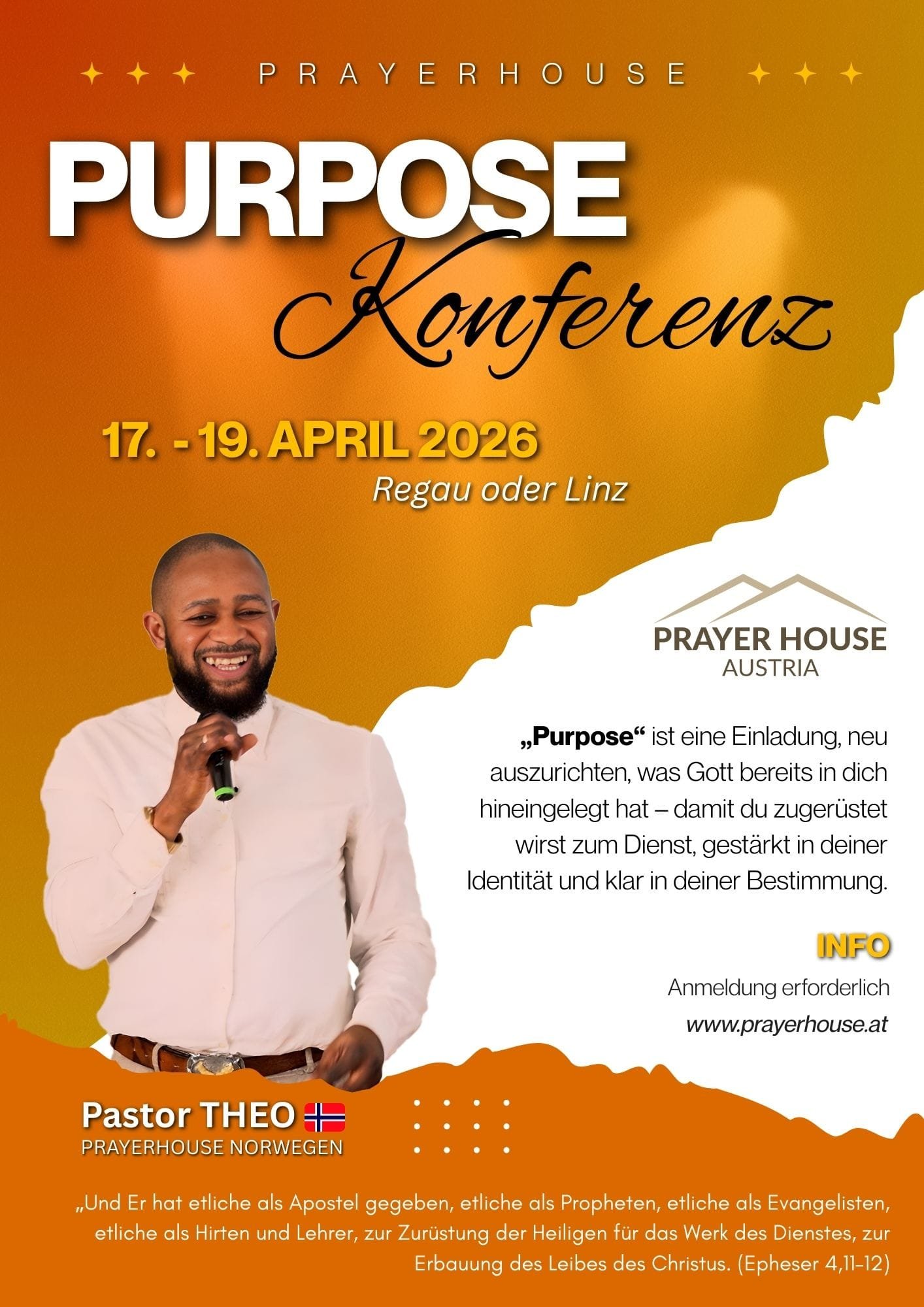 Gott hat jeden Menschen mit einer einzigartigen Berufung geschaffen. Die „Purpose“-Konferenz ist eine Einladung, neu zu entdecken, wozu du berufen bist – persönlich, als Familie und als Teil von Gottes größerem Plan.